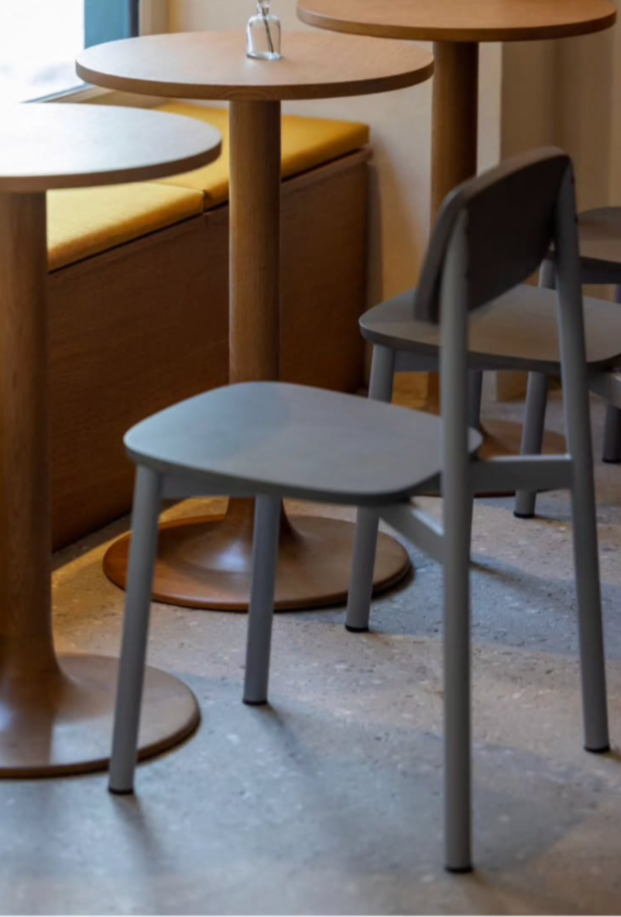 Ce jour là, tu prends ton petit cawa avoine à 6 euros et, innocent, tu poses ton royal postérieur sur une chaise imaginée par le designer scénographe Jean Couvreur. Te rends-tu comptes à ta 1ère gorgée qu’initialement, cette chaise avait été dessinée pour le réaménagement des ateliers d’artistes du Ministère de la Culture à la Cité internationale des Arts ? A la 2ème gorgée, il t’échappe peut-être encore que l’expérience vécue, au prix de l’assise, est un gagnant-gagnant.