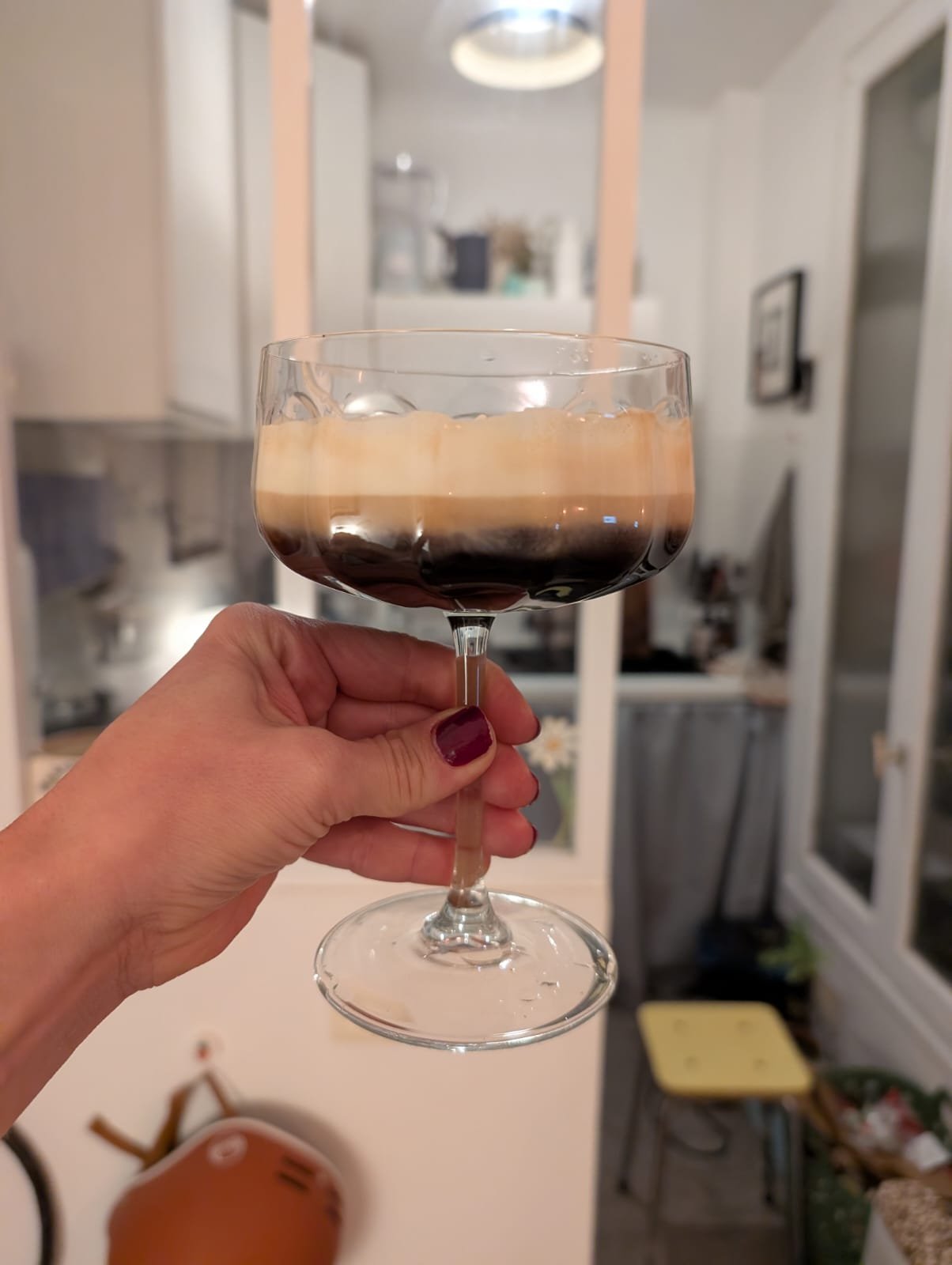 (Illusion des 3 couches sur la photo : 2 couches de crème qui se décompose un peu sous la chaleur au lieu de la 3ème couche de whisky affleurant son café)